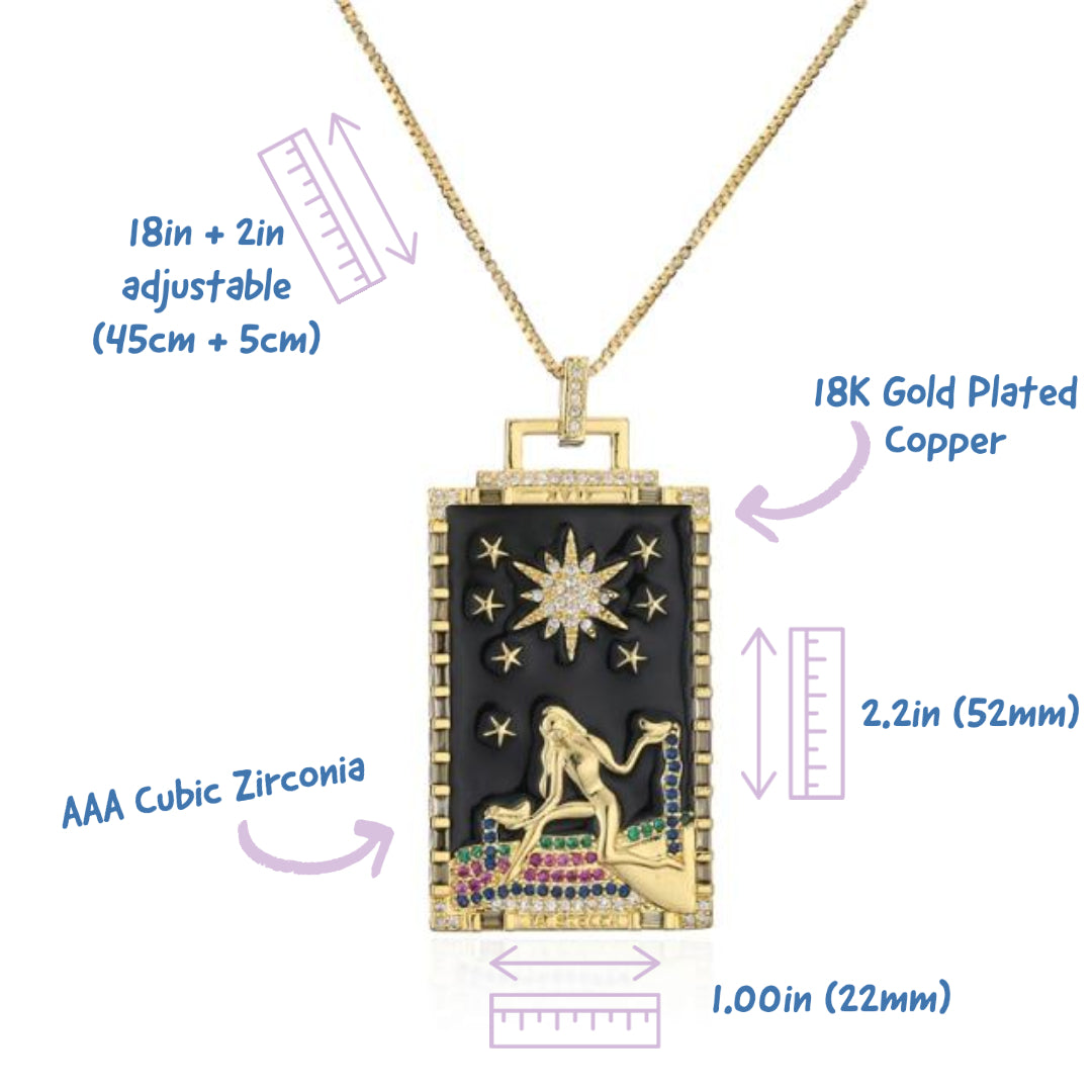 Our stylish Bijou Tarot Cards Necklace is made of high-quality copper metal and Austrian cubic zirconia rhinestone.
