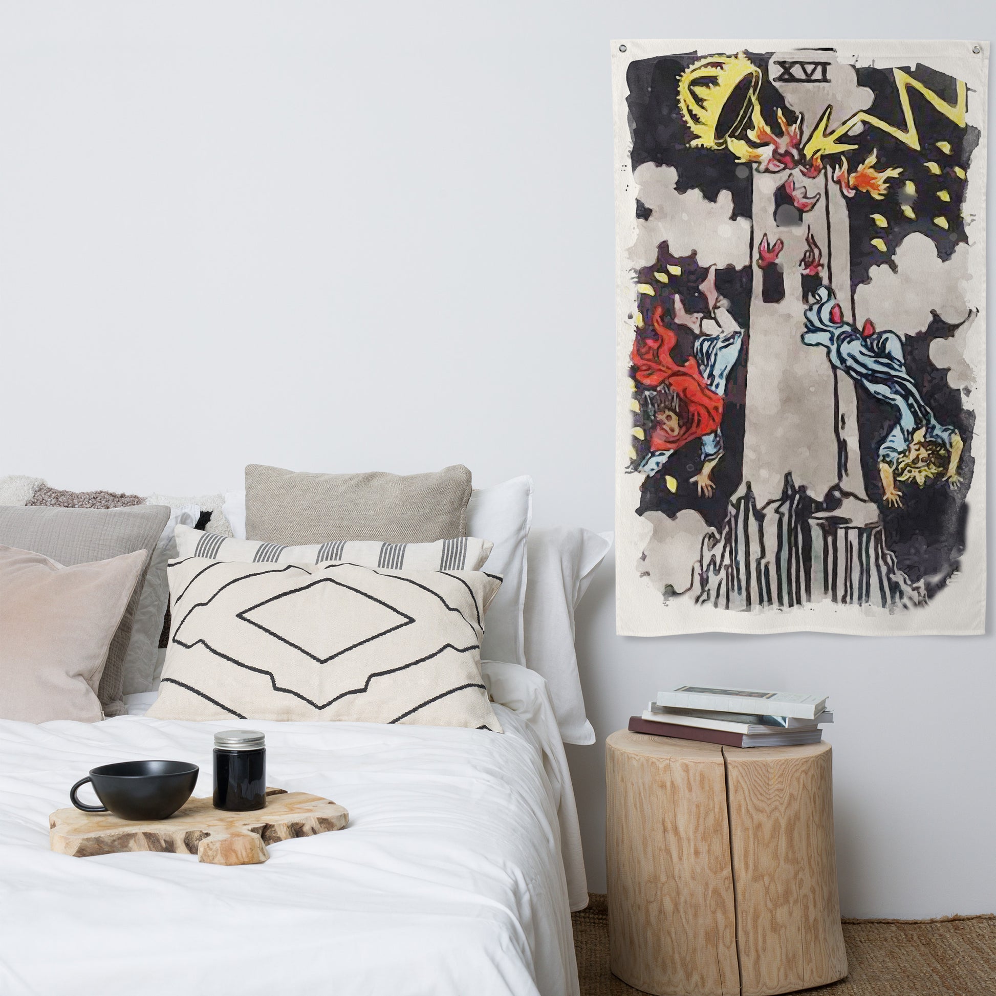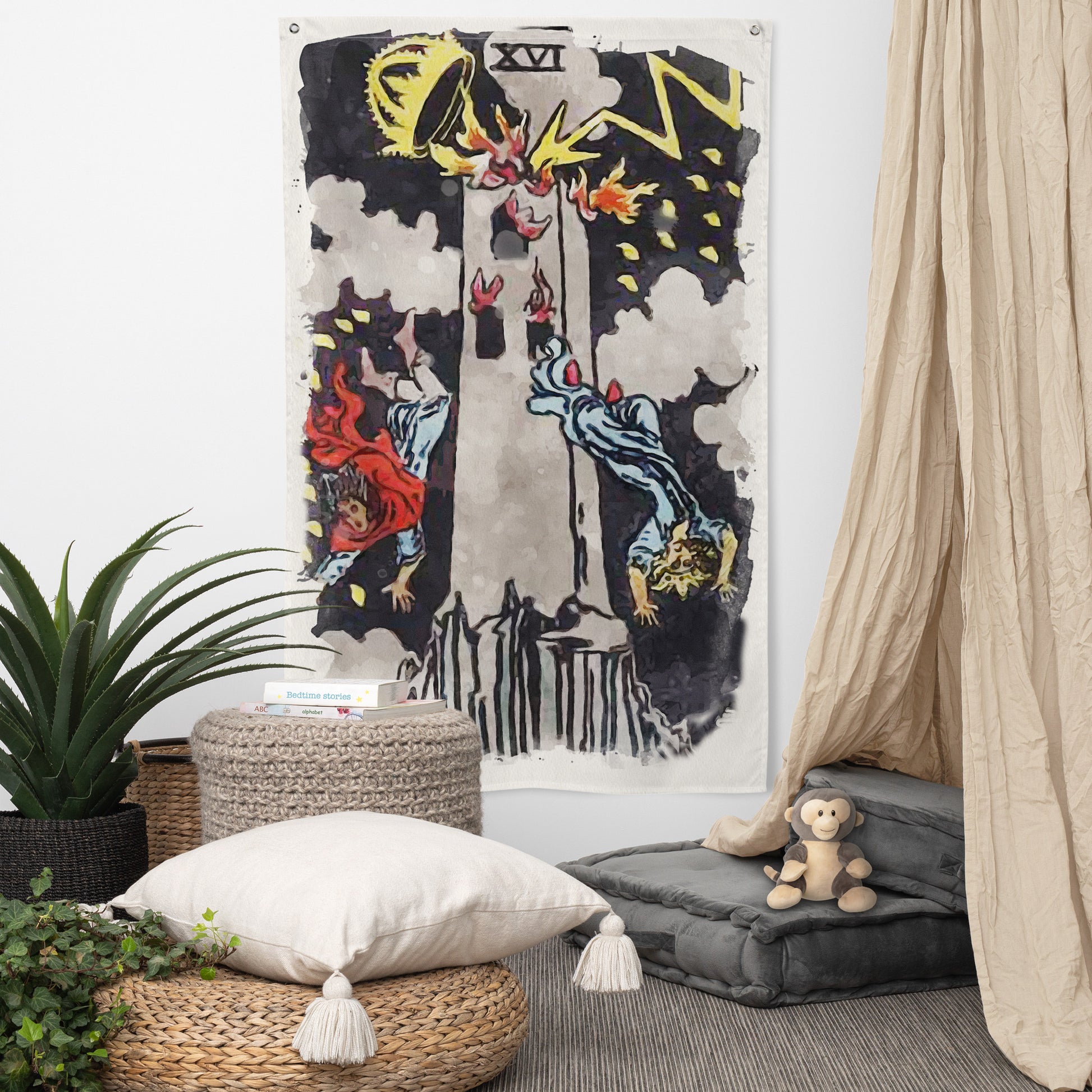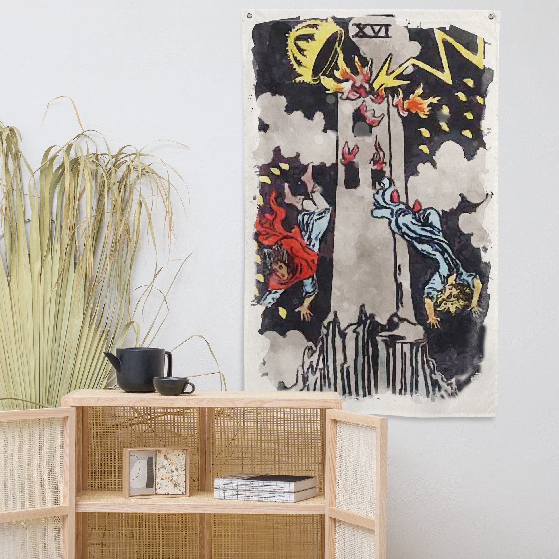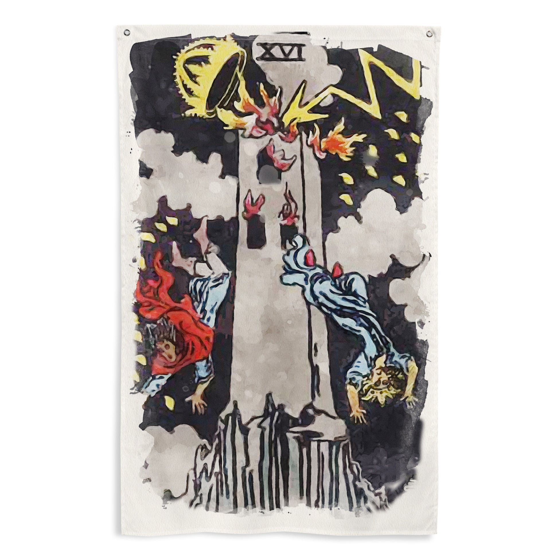 The Tower Tarot Card Wall Tapestry | Witchy Major Arcana Art Flag For Mystical Decor