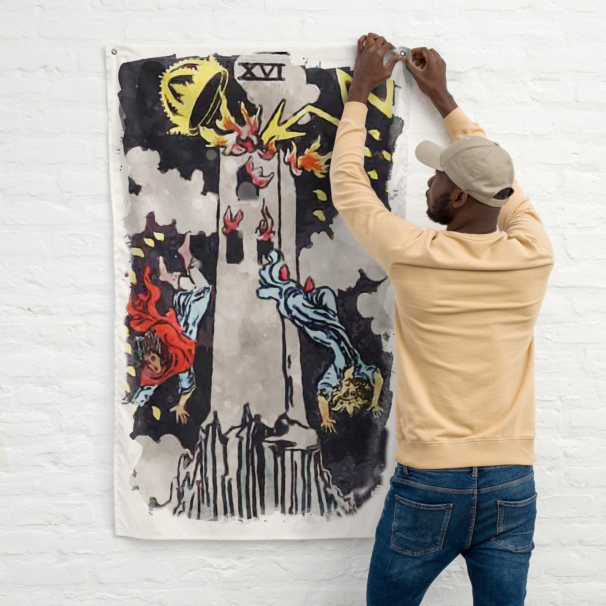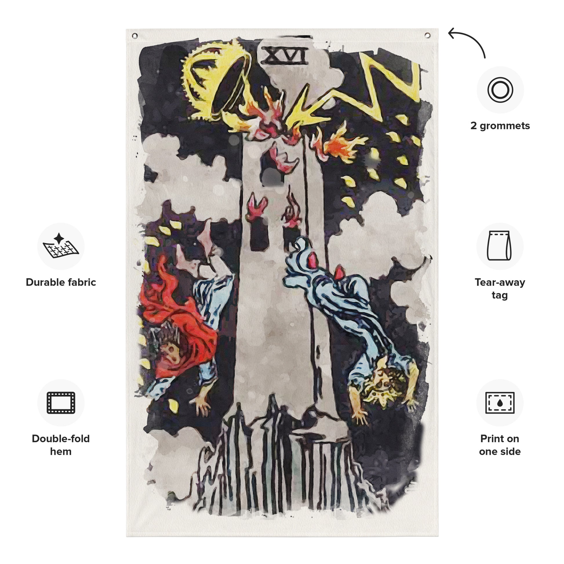 Who doesn't want to turn their house into a home? Brighten up your space by adding this unique Tarot Tapestry of The Tower Tarot Card to your wall. Your Tarot Card Flag won't crease or shrink thanks to the polyester material and will last a long time.