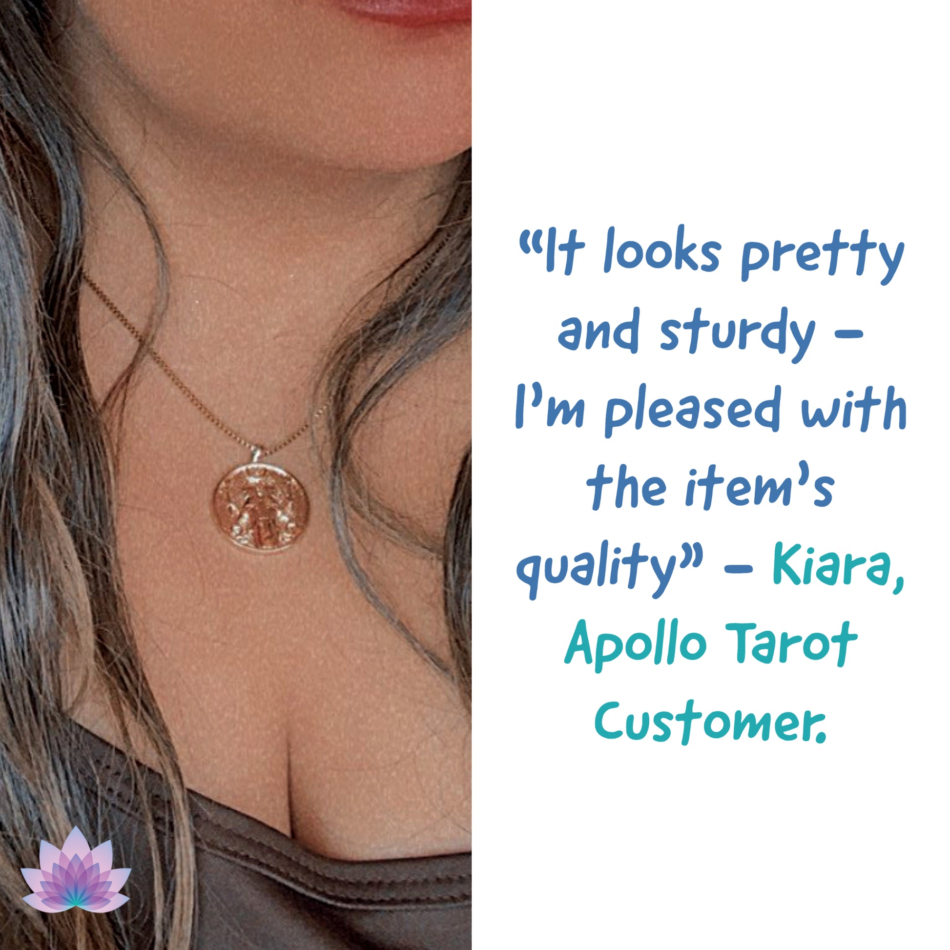 Just what I was looking for! Do you know how hard it is to find the high priestess and harder yet to find it in a durable metal for an awesome price?? I love it! I love the size, it is heavy! Will last for years to come, shipping was good. Thanks you!