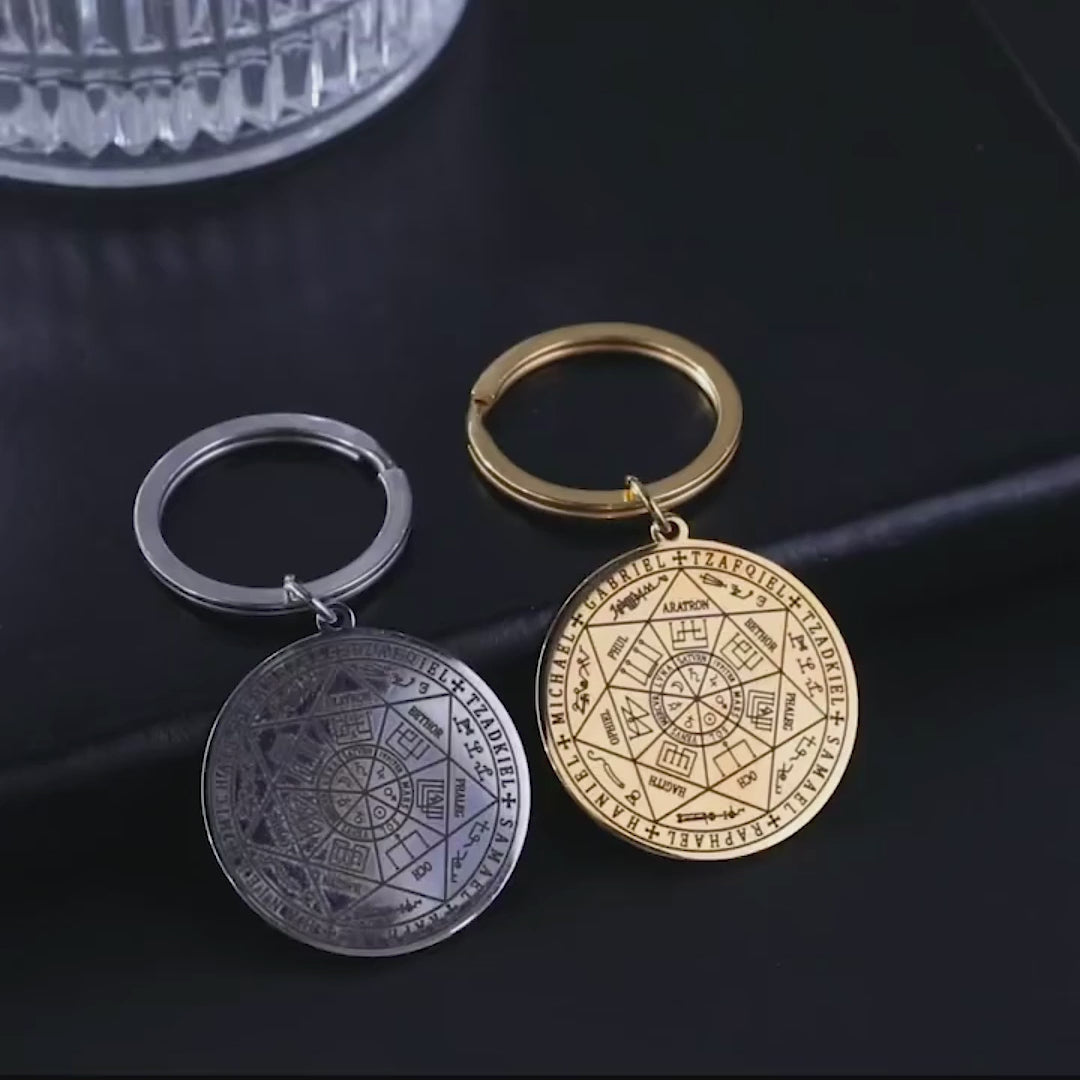 Sigil Of The Seven Archangels Keyring • Solomon Seal Kabbalah Amulet Pendant Keychain • Stainless Steel Talisman Charm Jewelry • Apollo Tarot Shop