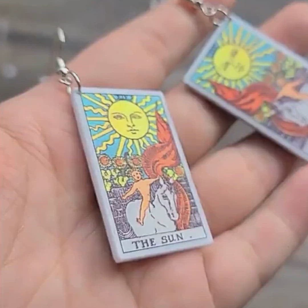 Tarot Card Dangle Earrings | Handmade Acrylic Major Arcana Pendants | Esoteric Jewelry