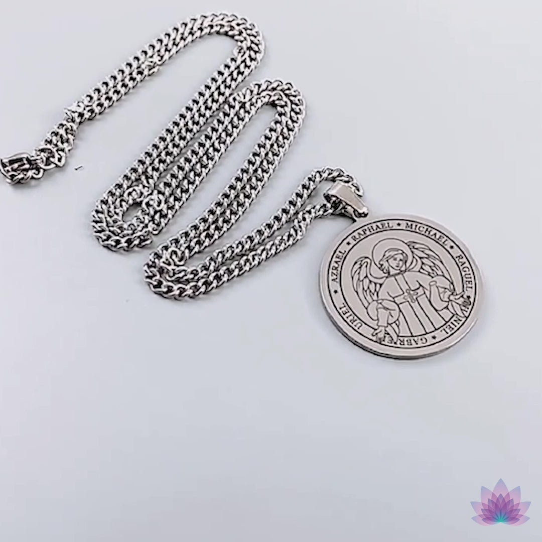 Nossos colares de aço inoxidável polido são gravados a laser com os retratos dos anjos mais adorados do cristianismo e do judaísmo. São sete arcanjos e representam: