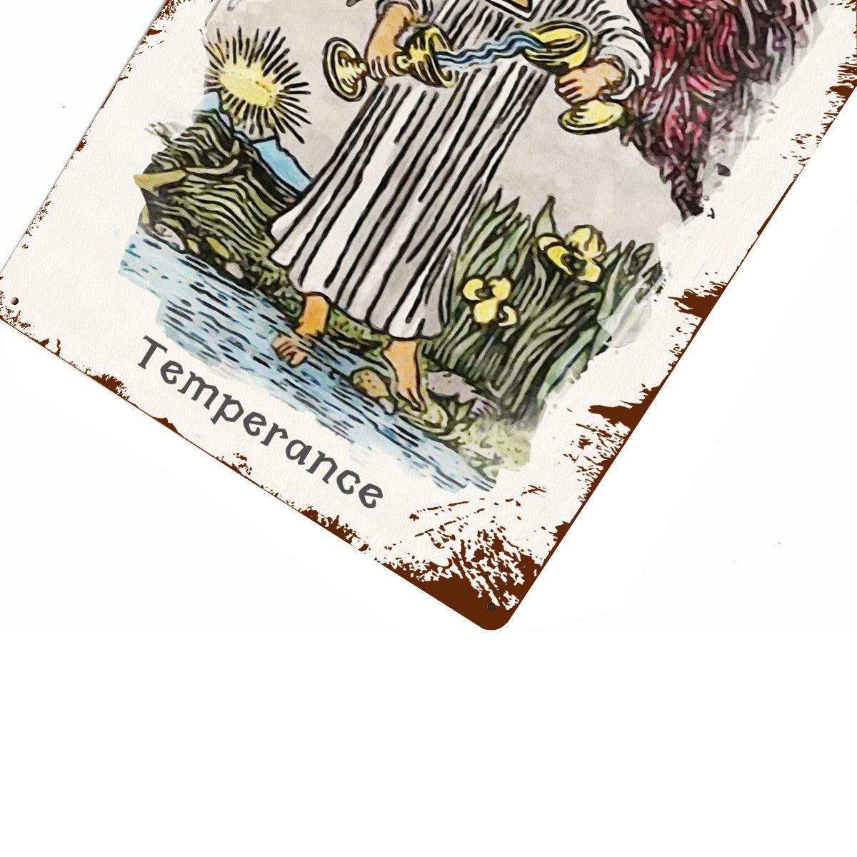 Pintura de carta de tarô com o símbolo da temperança em lata • Cartas estilo Waite com arcanos maiores, impressão em metal vintage