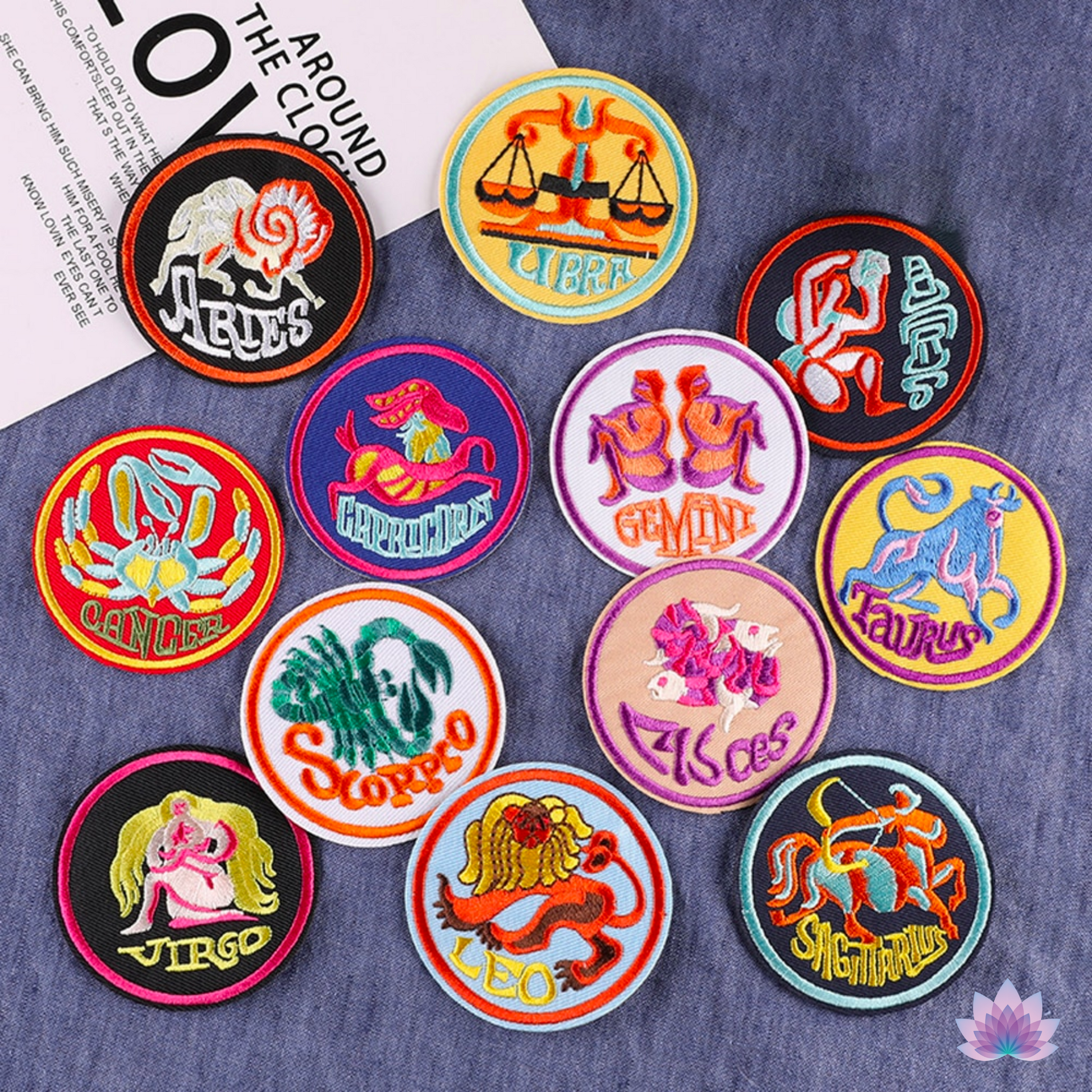 Estes deslumbrantes patches redondos, medindo 7 cm de diâmetro , são o complemento perfeito para seus jeans, mochilas, jaquetas e roupas favoritas. Cada patch apresenta um design vibrante representando uma das 12 constelações, completo com o nome do signo elegantemente bordado.